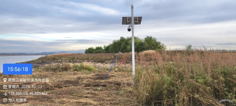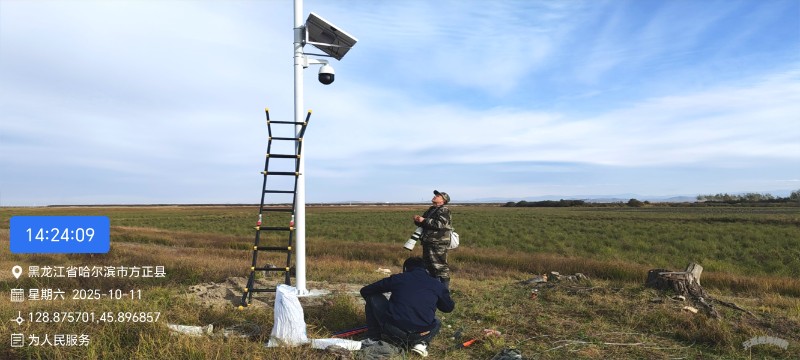 1、2025年10月11日,我们来到方正蚂蚁河三角洲省级自然保护区路由河与松花江交汇处,监测松花江沿岸候鸟监测监控设备运转情况,确保候鸟迁徙安全。