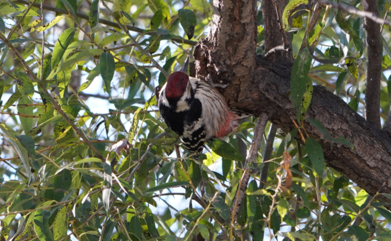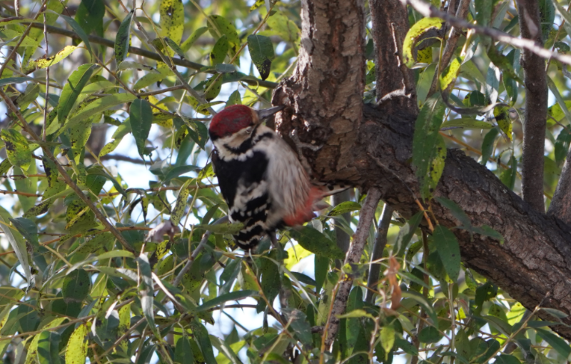 白背啄木鸟是松花江湿地森林里的留鸟。
